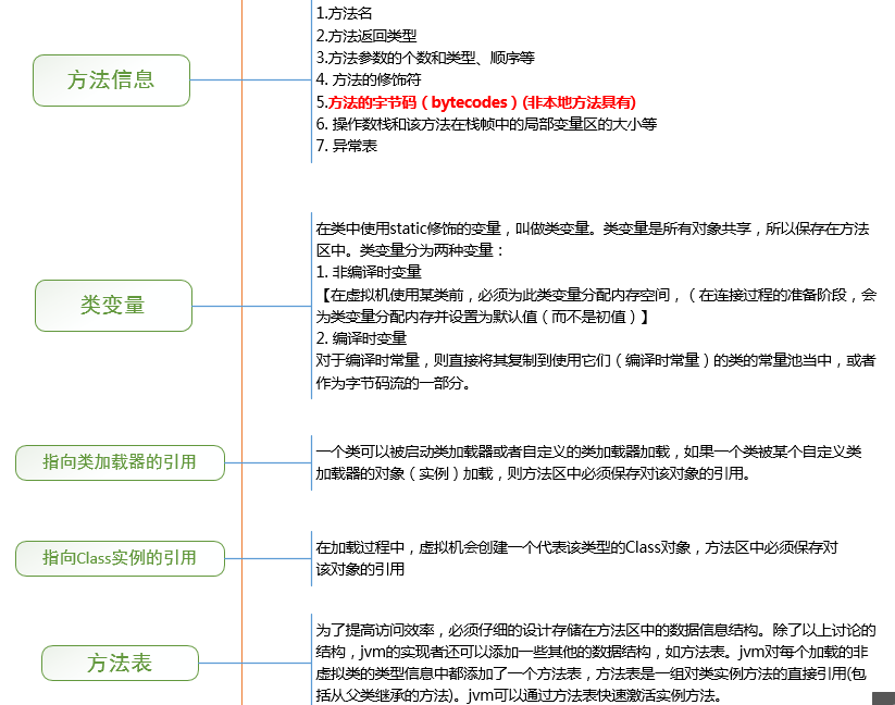 (1)存放的是加载后的字节码,类信息、常量、静态变量、即时编译器编译后的代码等数据 。