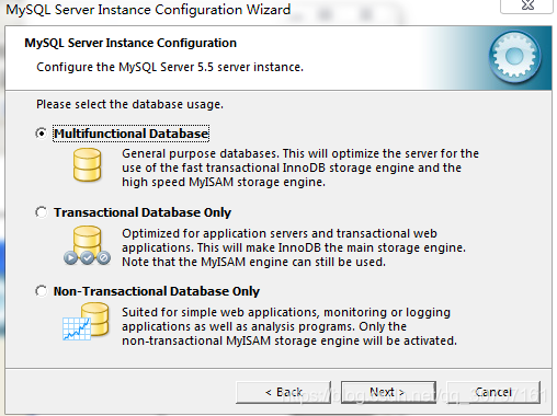 Non-Transactional Database Only(只是非事务处理数据库):该选项完全禁用InnoDB储存引擎,将所有服务器资源指派给MyISAM储存引擎。建议不使用InnoDB的用户选择该选项。