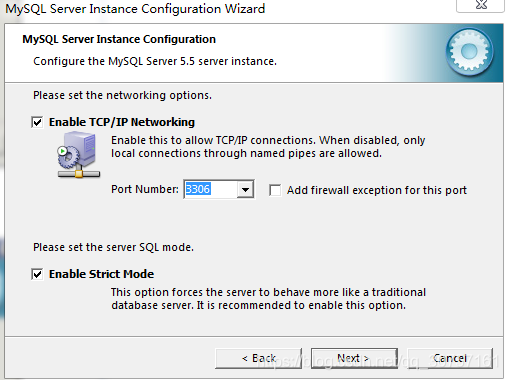 11、这里是配置MySQL的网络选项,可以启用或禁用TCP/IP网络,并配置用来连接MySQL服务器的端口号。默认情况启用TCP/IP网络。要想禁用TCP/IP网络,取消选择Enable TCP/IP Networking选项旁边的检查框。默认使用3306端口。要想更访问MySQL使用的端口,从下拉框选择一个新端口号或直接向下拉框输入新的端口号。如果你选择的端口号已经被占用,将提示确认选择的端口号,如果其他机器需要访问该数据库,建议勾选 Add firewall exception for this port(添加到防火墙例外)。