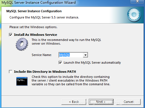 13、这里是配置MySQL的服务选项,可以将MySQL服务器安装成服务。安装成服务,系统启动时可以自动启动MySQL服务器,甚至出现服务故障时可以随Windows自动启动。