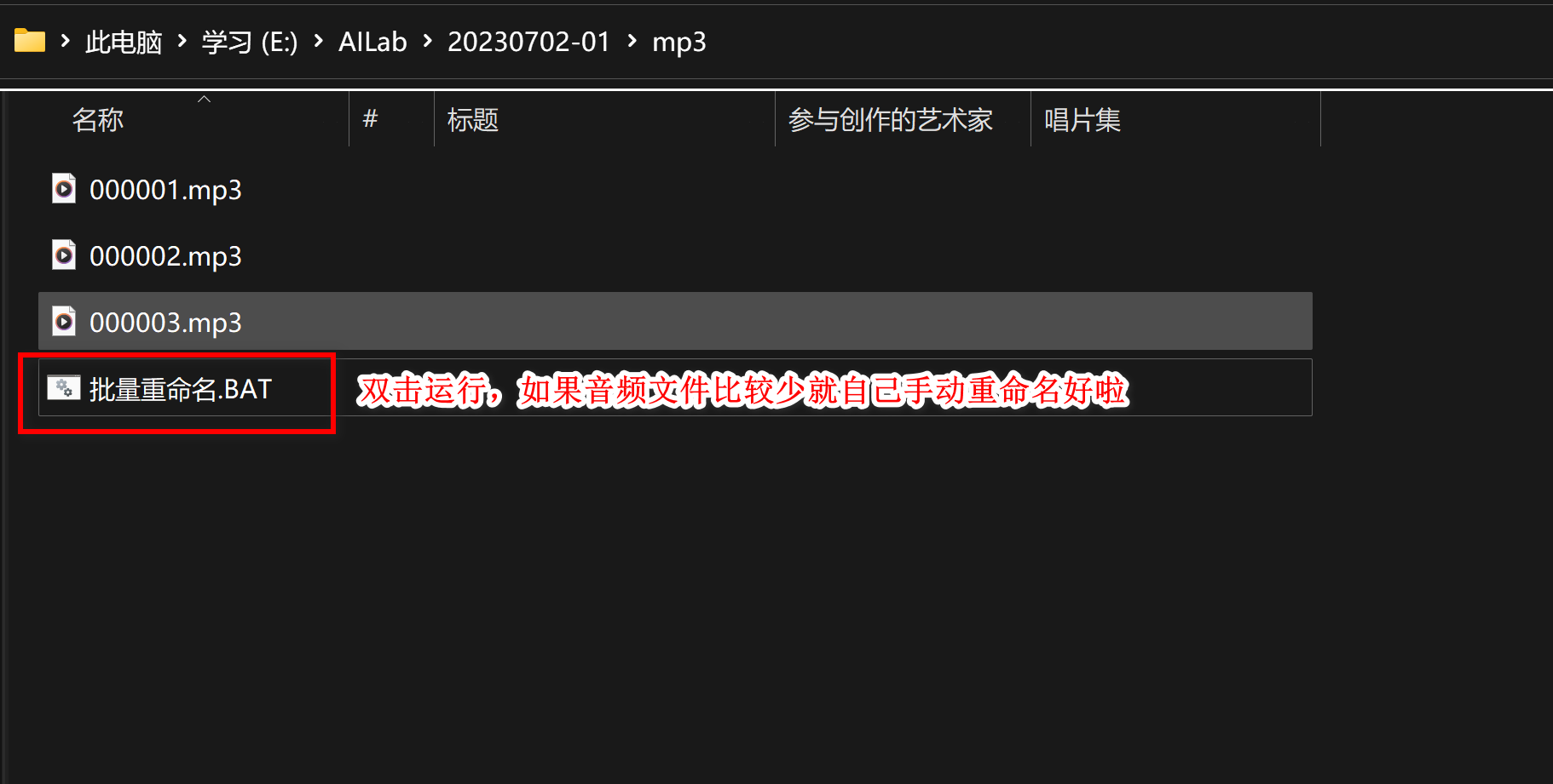 备注: 音频文件重命名(同理 BAT)