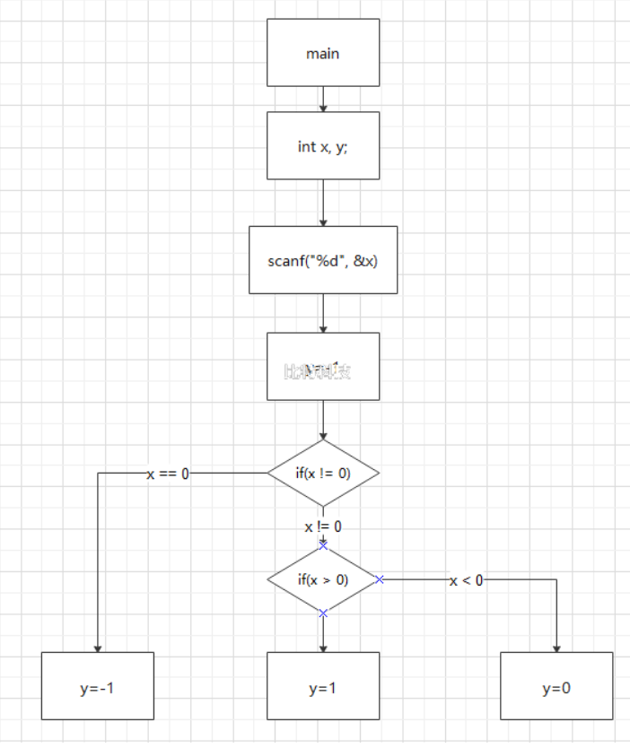解题思路: if语句使用过程中,else总是匹配距离自己最近的且没有配对的if,因此x>=0具有两种情况x>0和x0;因此x<0时y保持0;x>=0&&x>0时y=1;x>=0&&x0时y=-1。