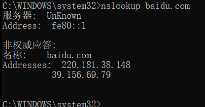 黑客一般nslookup想要查的域名,若是有多个ip就是用了cdn,多半为假ip;如图:
