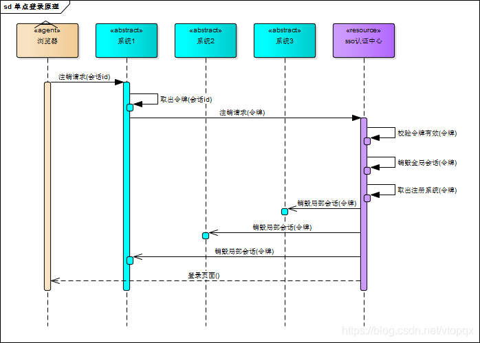 - 用户向系统1发起注销请求