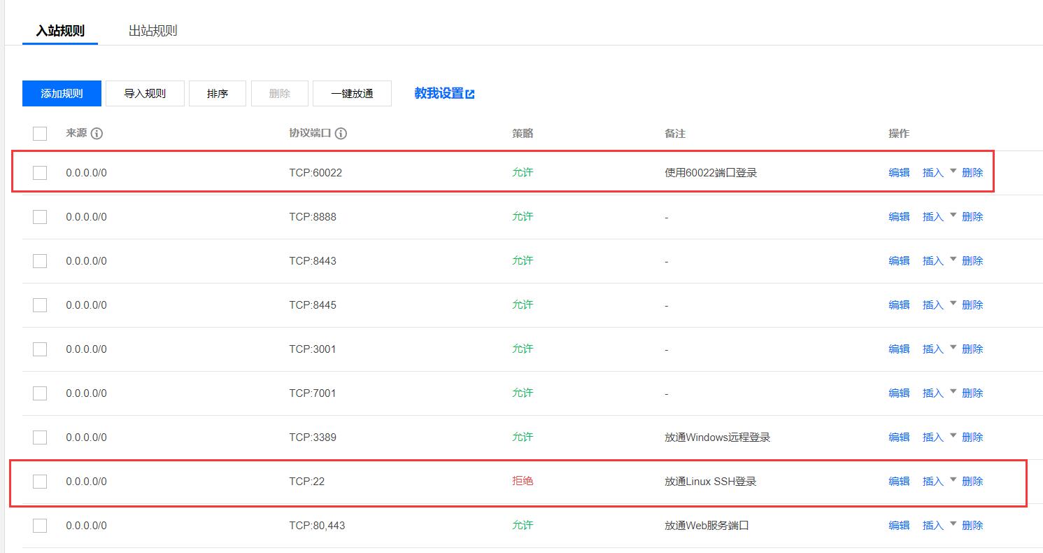 3.修改云服务安全策略,限制端口访问,增加只开放允许访问的端口配置,