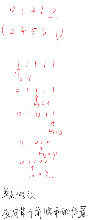 我们需要一个数据结构,支持单点修改和查询指定前缀和对应的第一个位置。