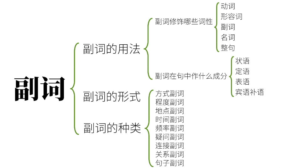这次咱们来说英语副词,先看副词的用法,主要从两方面看:一、副词修饰哪些词性;二、副词在句中做什么成分?