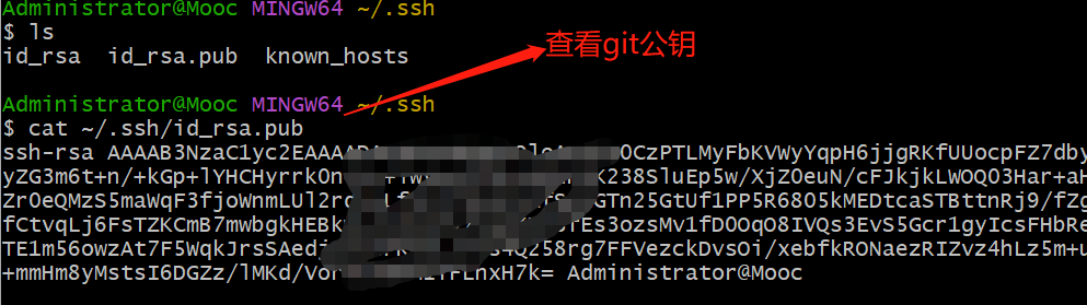 git的ssh公钥存储在 id_rsa.pub文件中,如果id_rsa.pub 文件,直接输入命令查看git公钥 :