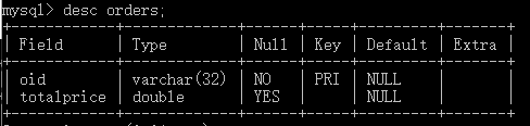 create table orders(oid varchar(32) PRIMARY KEY,totalprice double);