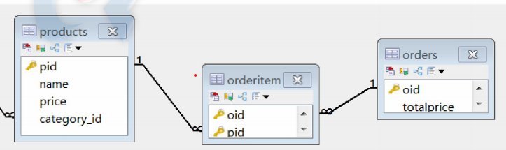 - 一对多(分类和商品):在多的一方添加字段,并将多的一方的外键指向低的一方的主键
