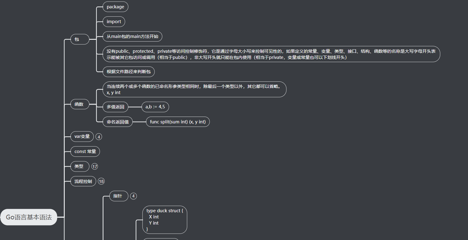 命名返回值: func split(sum int)(x,y,int)