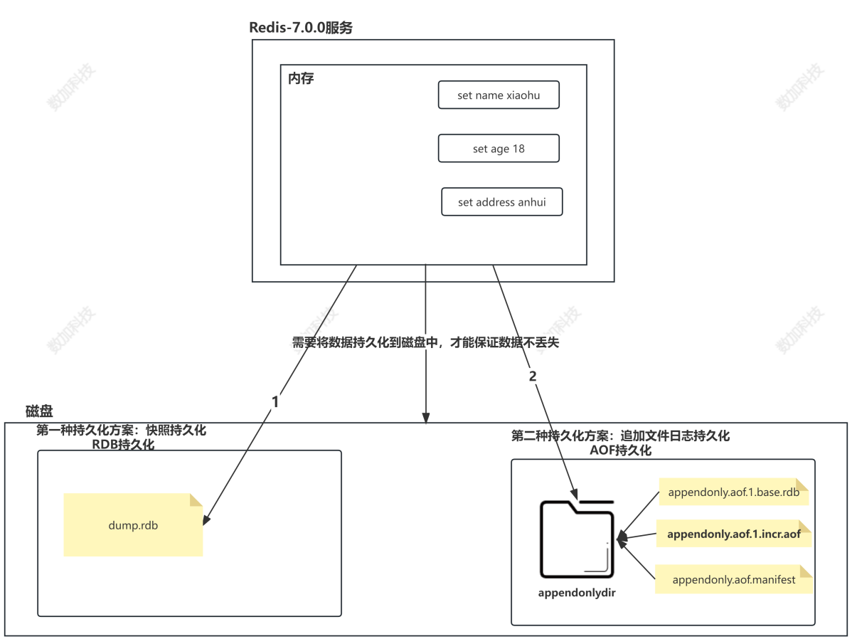Redis官方提供了两种不同的持久化方法来将内存的数据存储到硬盘里面分别是