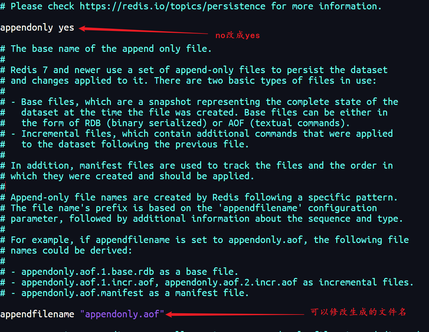 - 在redis的默认配置中AOF持久化机制是没有开启的,需要在配置文件中开启