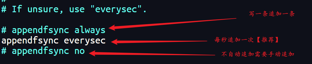 - 说明: 每秒执行一次同步显式的将多个写命令同步到磁盘