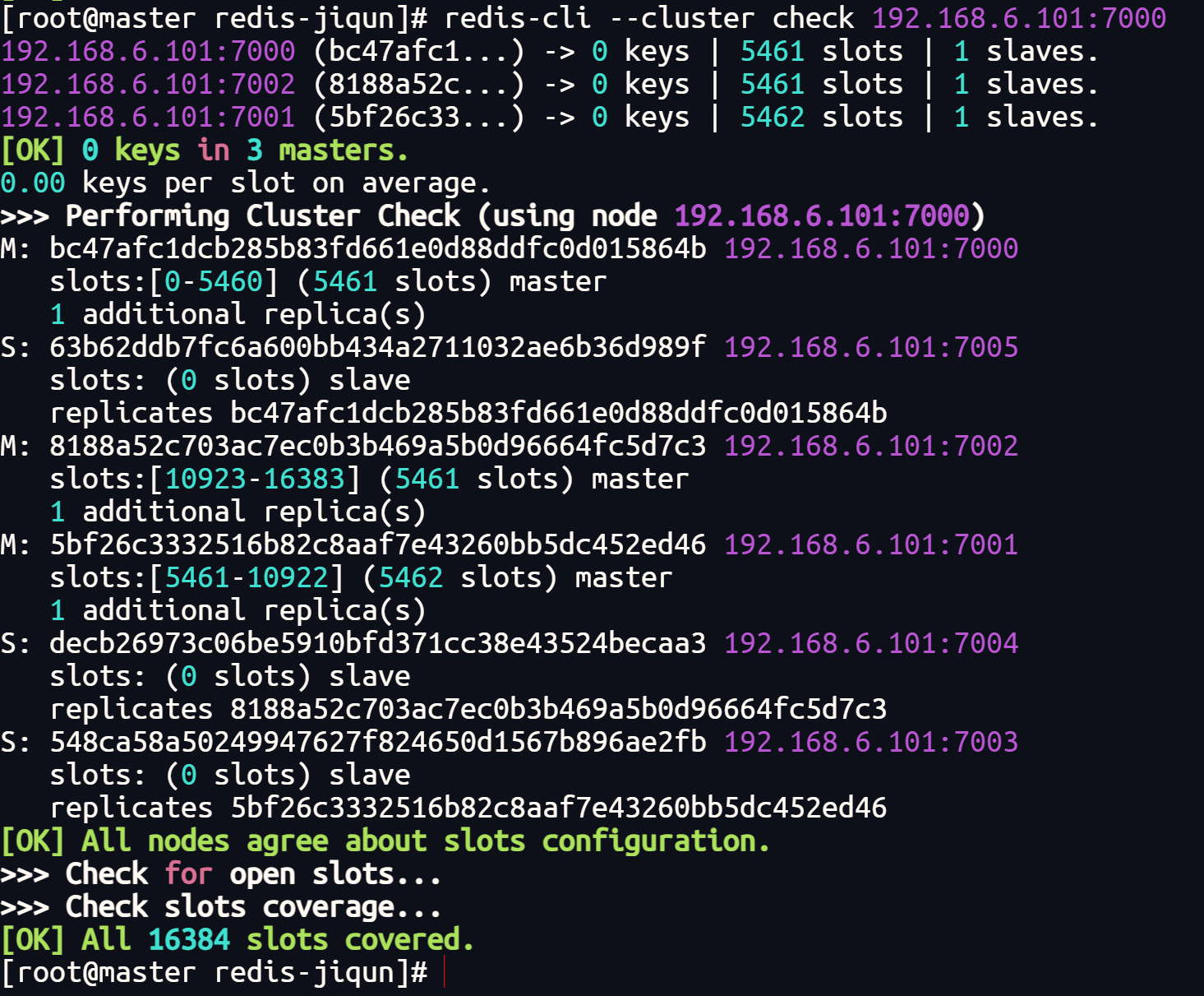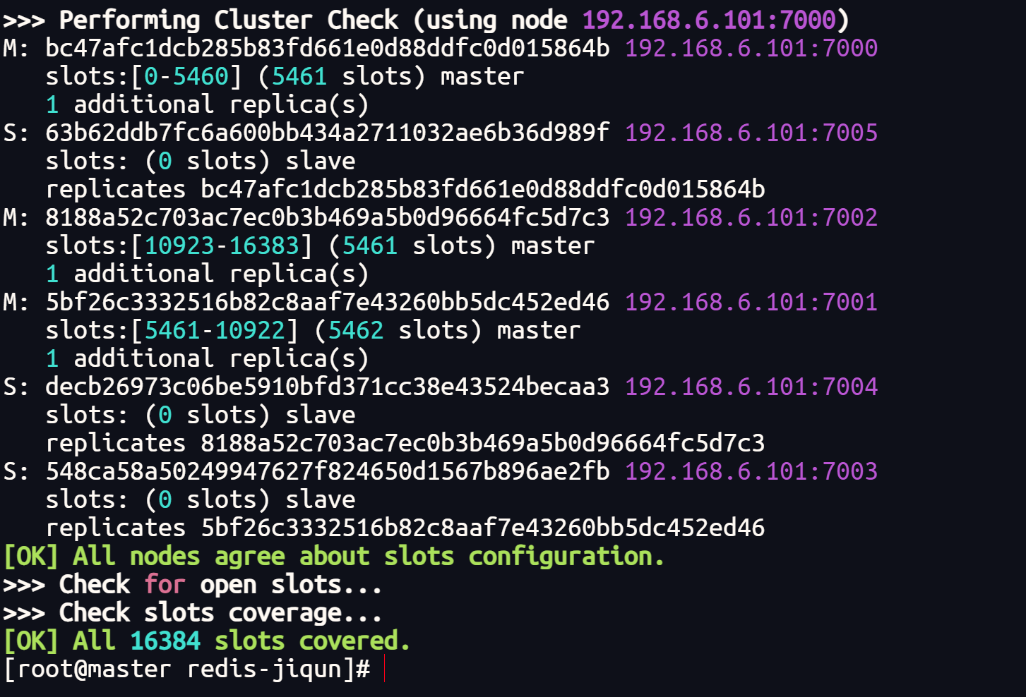 redis-cli --cluster check 192.168.6.101:7000
