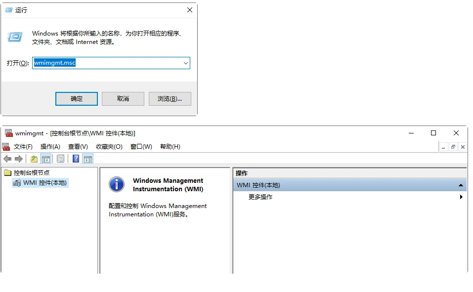 按下Win+R打开运行,输入:wmimgmt.msc ,点击确定,弹出WMI管理