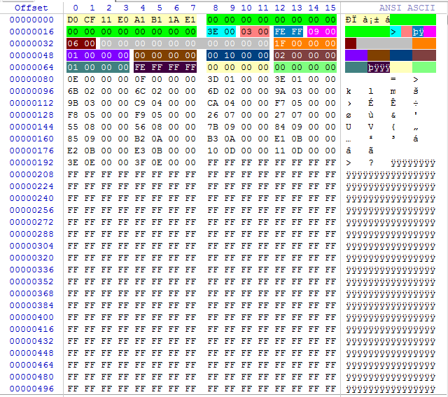 上图为一个DOC复合文档头部起始扇区