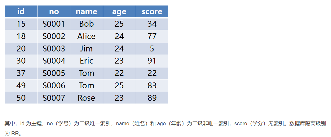 Lock in share mode。在查询语句后加这一句话,会对查询结果中的每行都加共享锁,当没有其他线程对查询结果中的任一行使用排他锁时,可以成功申请到锁,否则会被阻塞。 -