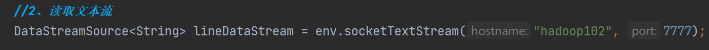 DataStreamSource<String> lineDataStream = env.socketTextStream("hadoop102", 7777);