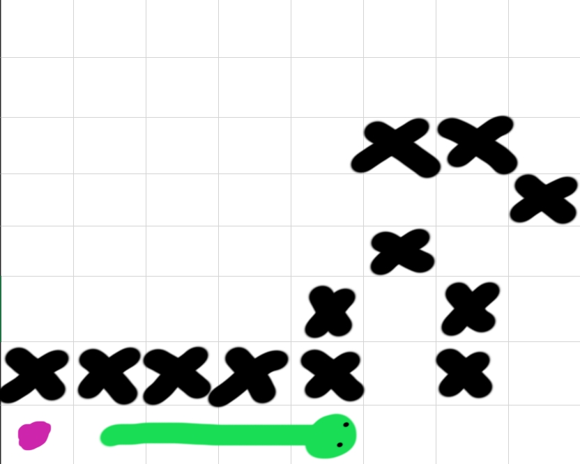 - 蛇被卡在一格宽,暂时无法转向的路径中,此时蛇会认为自己身后的果子是吃不到的