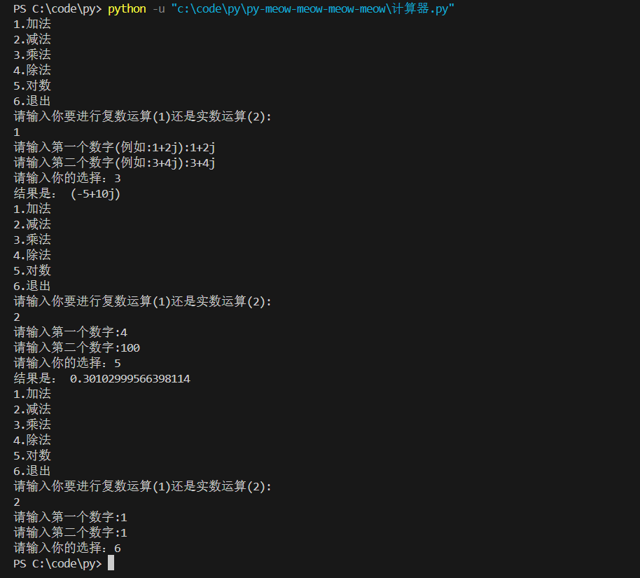 在本实验中,我运用Python编程语言,成功编写了一个功能完备的计算器程序。程序能够执行预期内的各种运算,并且代码已经上传至码云平台。