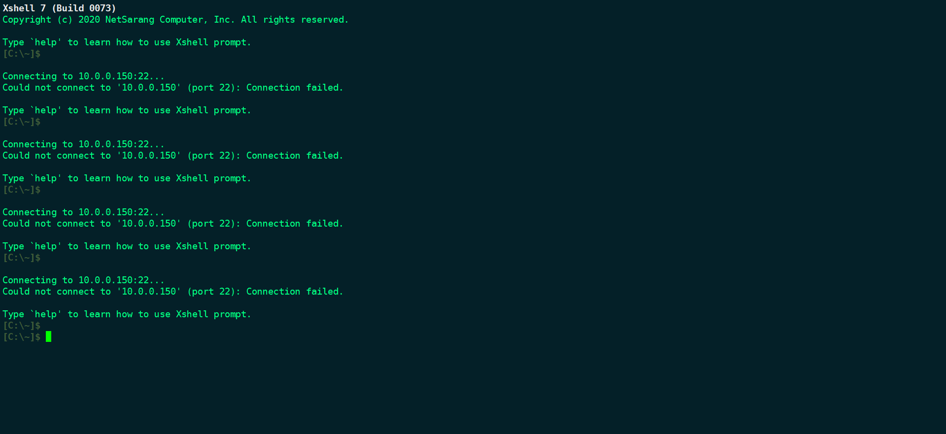 用window cmd连接ssh root@10.0.0.150 显示 错误,ping 10.0.0.150 只发送,无法接收。重新修复VM。好了,可能和启动的VPN有关。