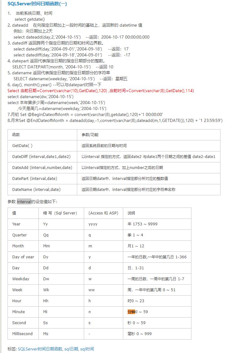 SQLServer时间日期函数