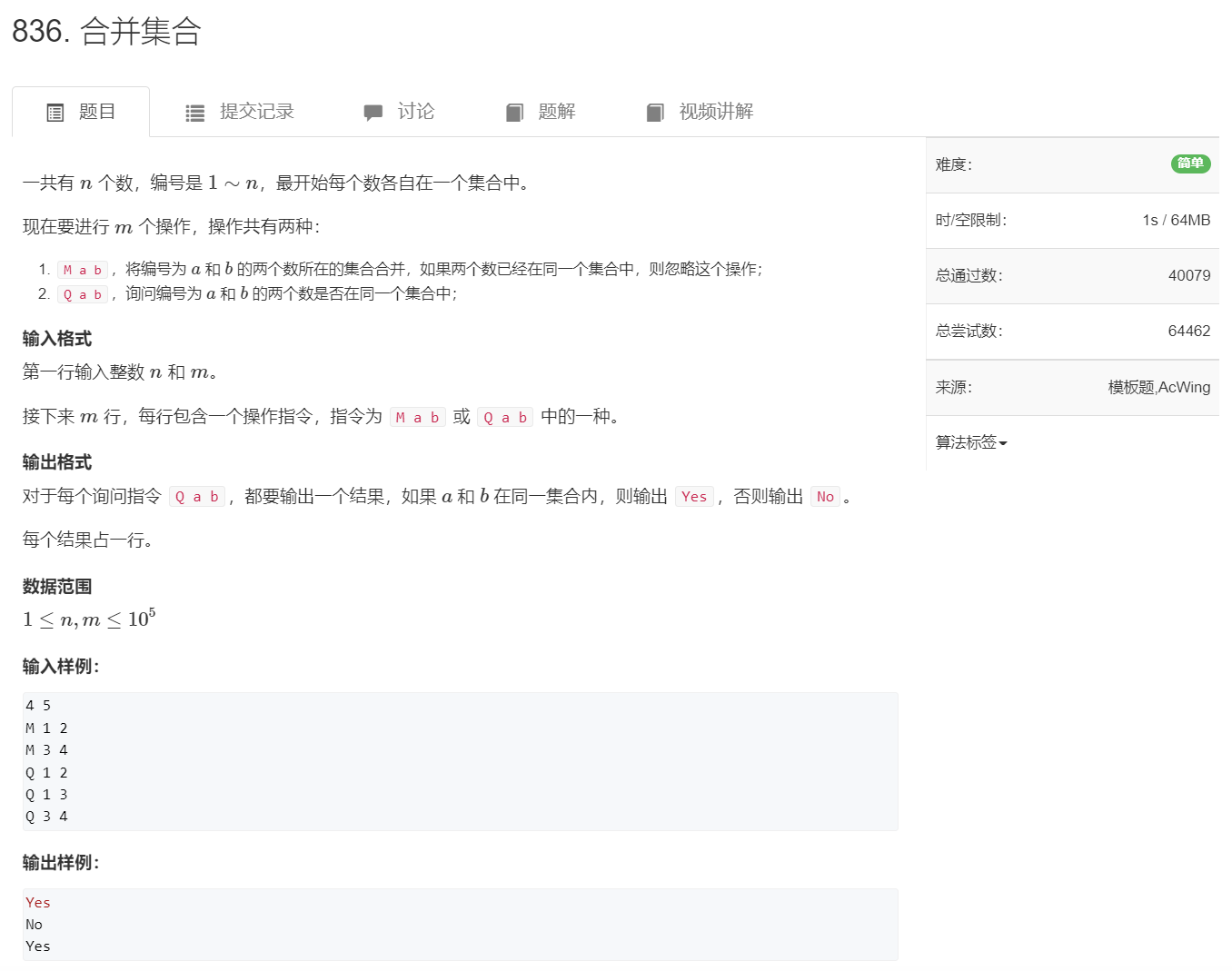 if (find(a) == find(b)) puts("Yes");