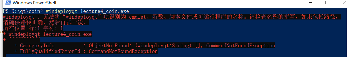最近在使用qt进行打包时出现了了如下问题:无法识别windeployqt,不能执行