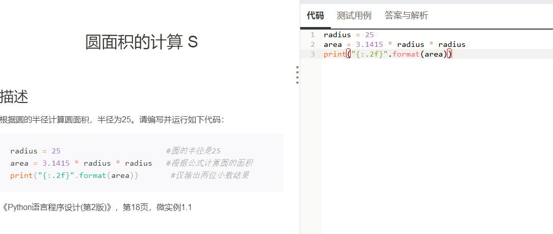 根据圆的半径计算圆面积,半径为25。请编写并运行如下代码: