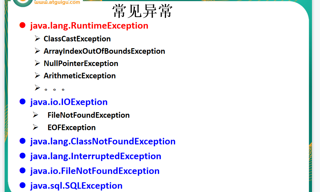 异常分类:异常按照对程序的影响情况来分有Error(错误) 和 Exception(意外);
