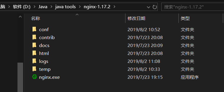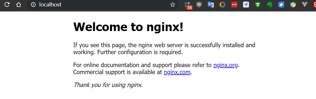 3、双击Nginx.exe即可启动Nginx,访问localhost端口,出现下图表示Nginx安装完成