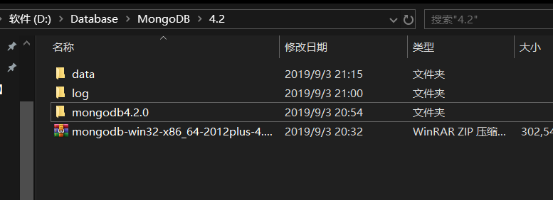 mongod.exe --dbpath "D:\Database\MongoDB\4.2\data" --logpath "D:\Database\MongoDB\4.2\log\mongodb.log" --install --serviceName "Mongodb" -logappend --directoryperdb