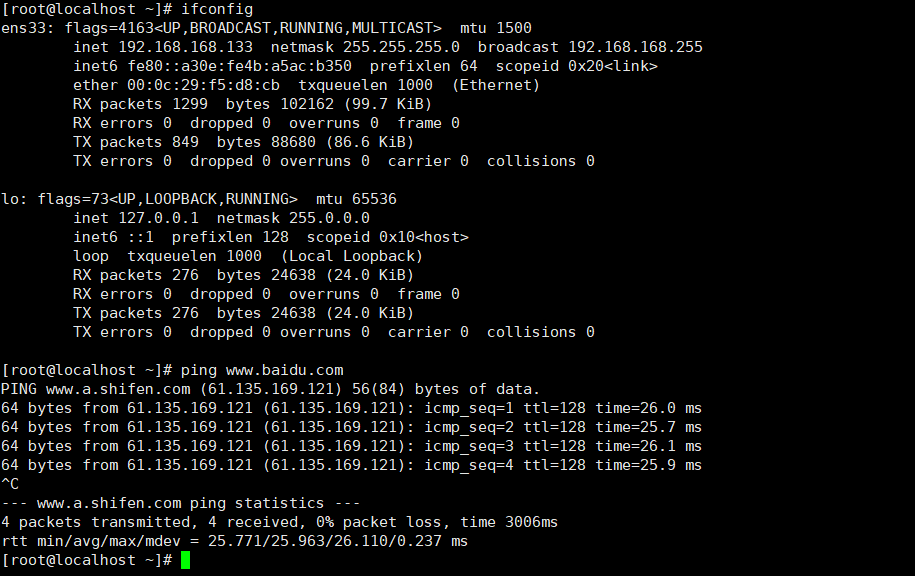 安装成功,可以使用ifconfig查看当前IP