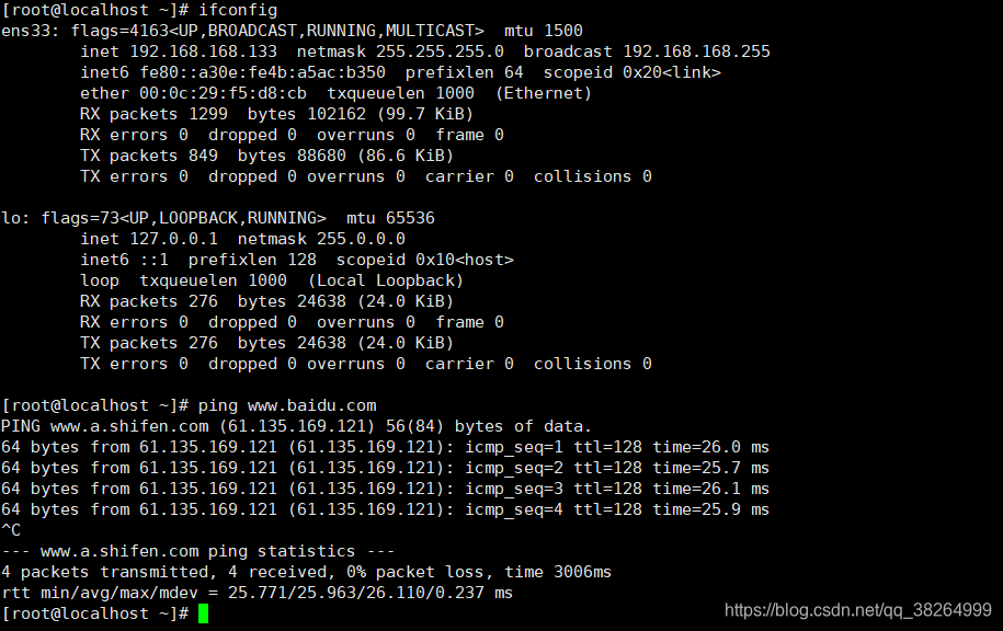 (1)通过ip查询网卡信息,由于没有安装net-tools,无法使用ifconfig。