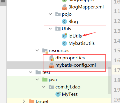 1.将UserMapper.xml手动放在target\test-classes\com\hjf\dao路径下
