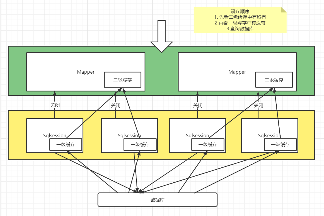 - 二级缓存也叫全局缓存,一级缓存作用域太低,所以诞生了二级缓存