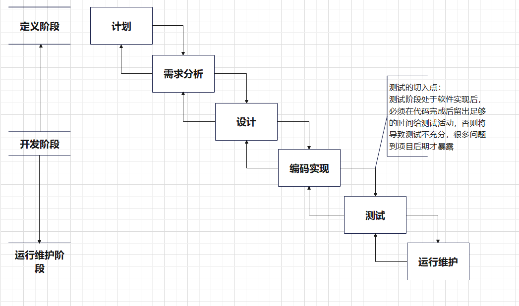 软件生命周期及为软件从产生直到报废的整个过程。(软件测试要贯穿于整个软件生命周期中)