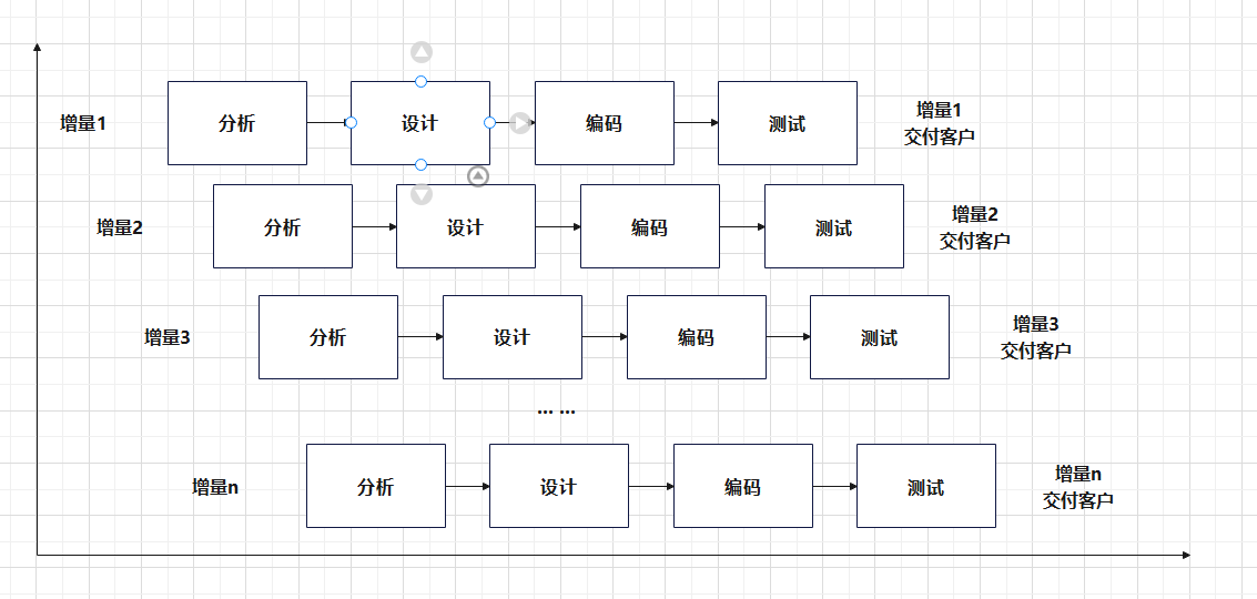 - 结合瀑布模型和演化模型的优点,在需求不清时,对最核心或最清晰的需求,利用瀑布模型实现。再对后续需求进行重复开发(可能按照需求的优先级逐个进行),从而逐步建成一个完整的软件系统。