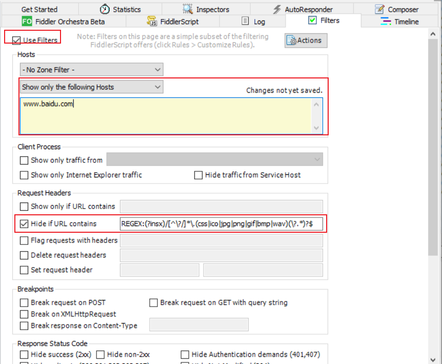 - Hide 304s:隐藏响应为HTTP/304 Not Modified状态的所有回话。