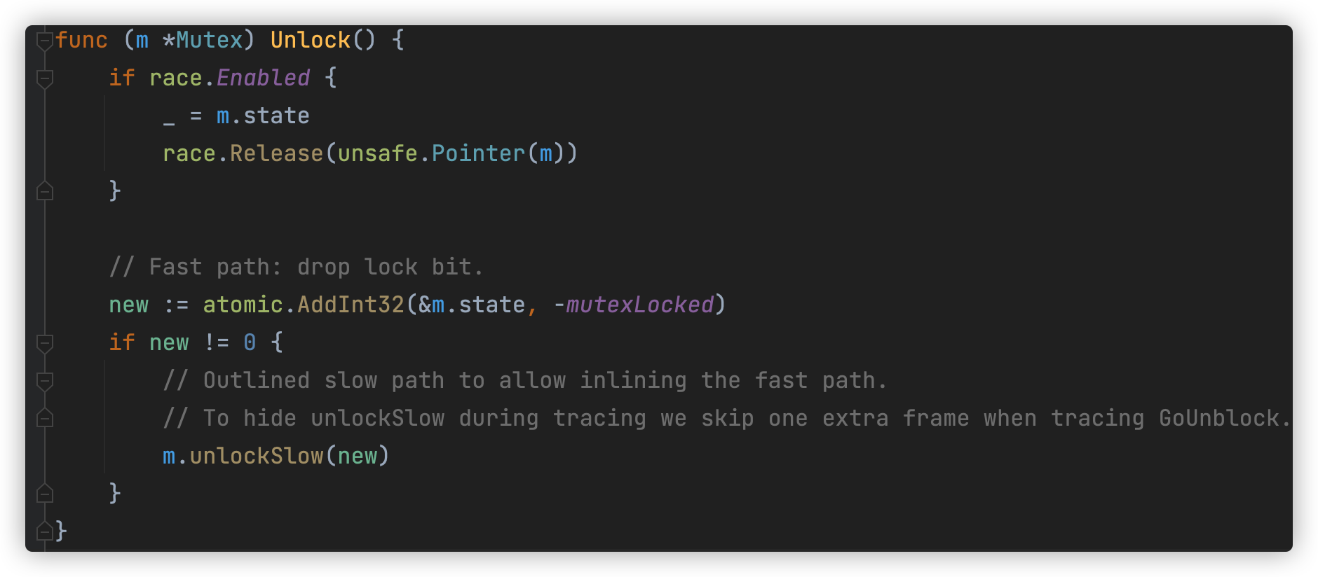 new := atomic.AddInt32(&m.state, -mutexLocked)
