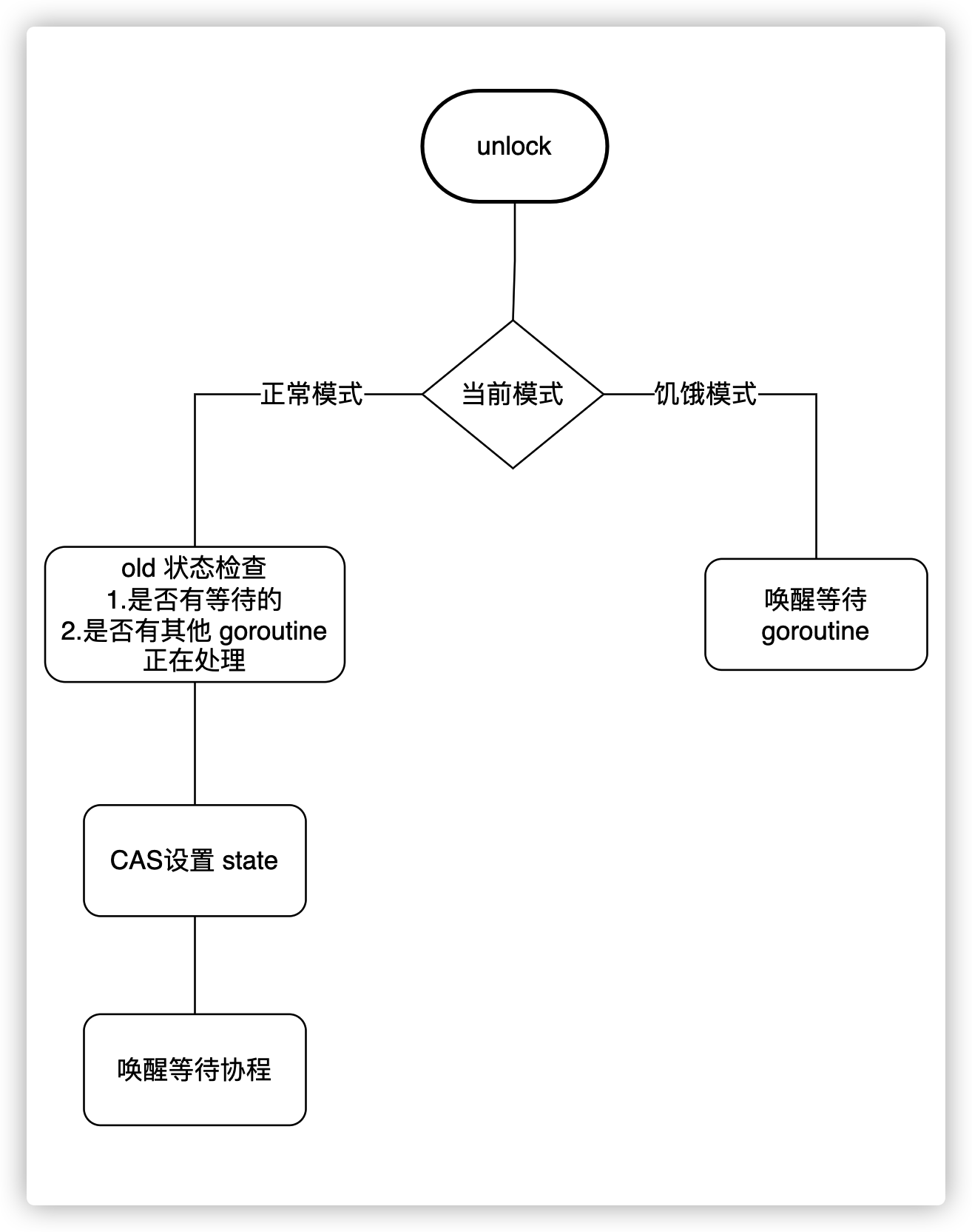 // 7.如果唤醒等待队列的 goroutine 不饥饿,或是等待队列中的最后一个 goroutine
