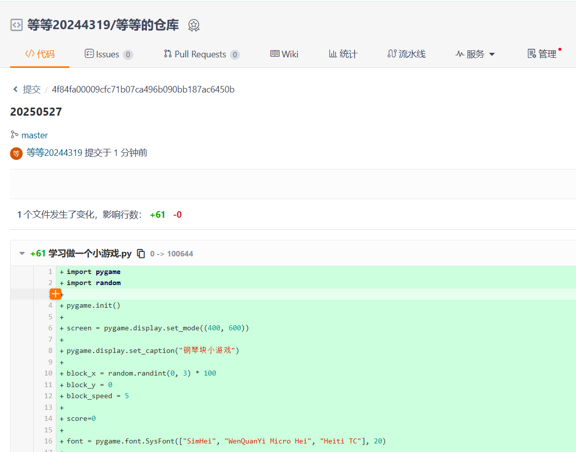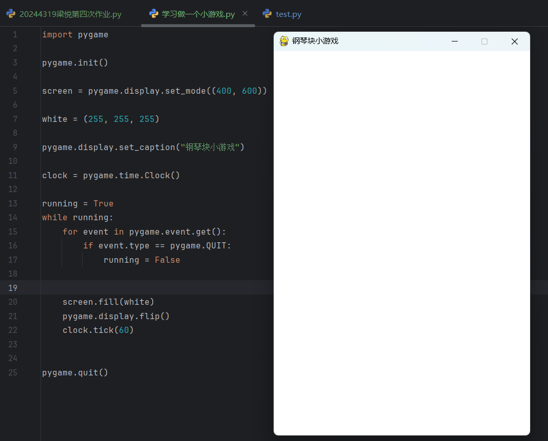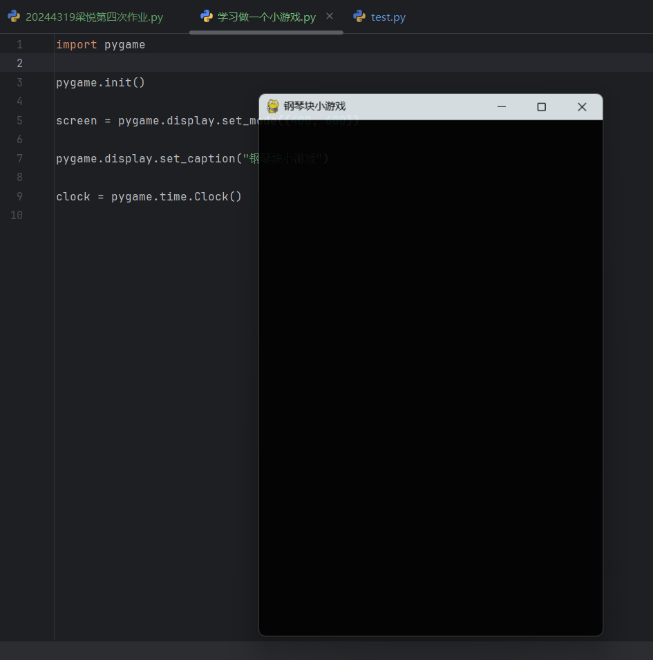 本次结课大作业,我选择了 “编写小游戏” 的方向~打算用 Python 来实现一个钢琴块小游戏!部分代码是跟着网上的教程学的,边学边琢磨,然后再把自己的想法加进去,一点一点把程序搭起来啦~感觉像拼积木一样,特别有成就感!😊