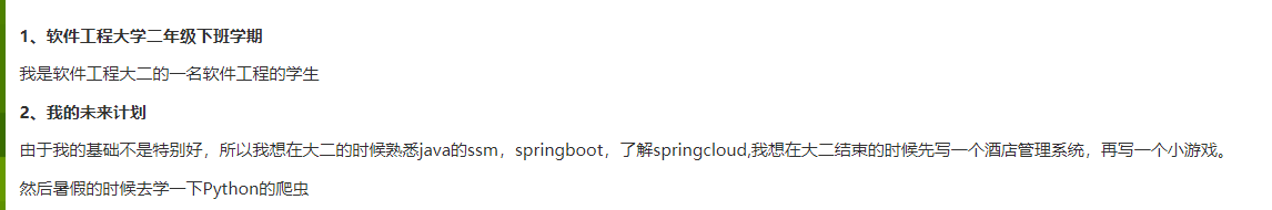 这个学期我学会了通过自己的思考去解决问题,不在像以前一样,一遇到问题就问别人,或者是不看输出的问题就去盲目的搜索,导致了我每次都浪费很长时间但是我却一个问题都解决不了