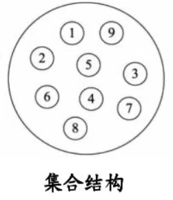 a.集合结构:集合结构中数据元素除了属于同一个集合外,他们之间没有任何其他的关系