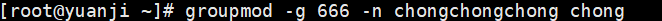 将用户组chong的用户组id改为666,重命名为chongchongchong