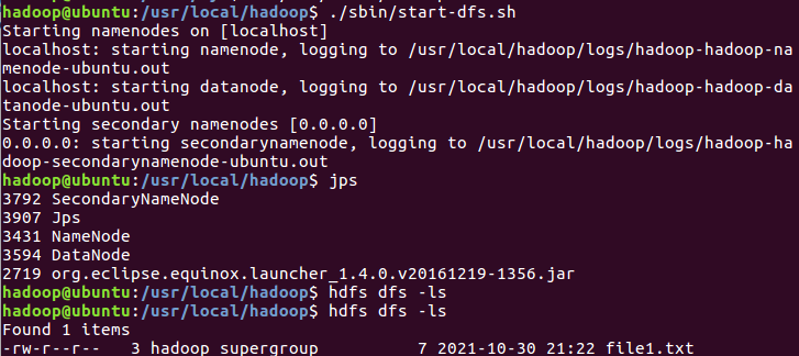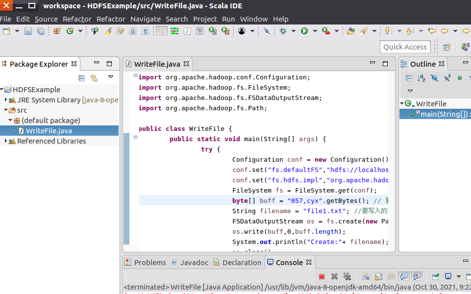 二、利用hadoop 的java api,向HDFS写一个文件。