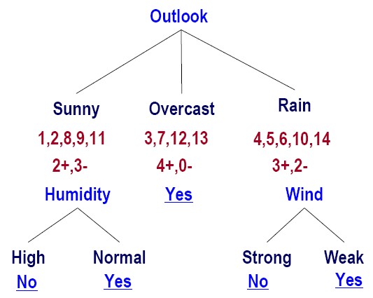 , Overcast , Hot , Normal , Weak , Yes