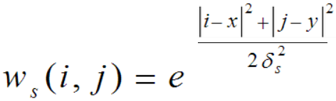 在2D高斯滤波中的具体实现就是对周围的一定范围内的像素值分别赋以不同的高斯权重值,并在加权平均后得到当前点的最终结果。而这里的高斯权重因子是利用两个像素之间的空间距离(在图像中为2D)关系来生成。通过高斯分布的曲线可以发现,离目标像素越近的点对最终结果的贡献越大,反之则越小。