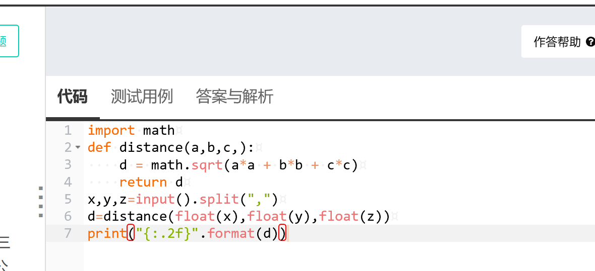 d=distance(float(x),float(y),float(z))#调用distance函数